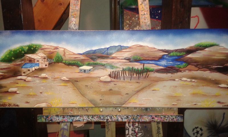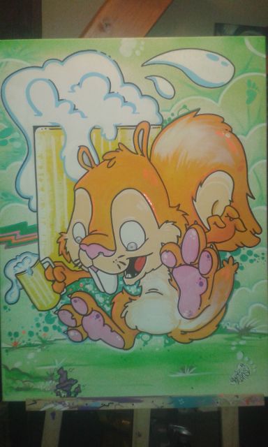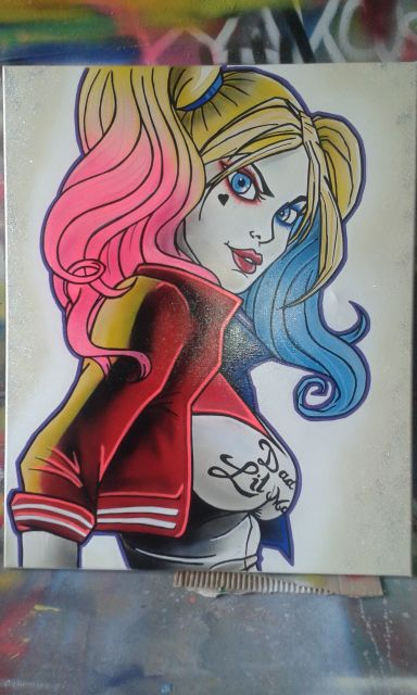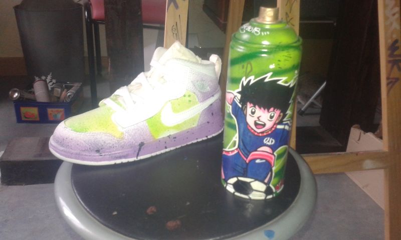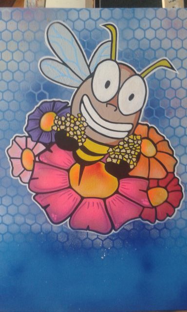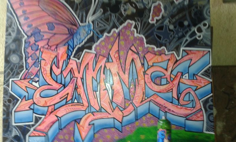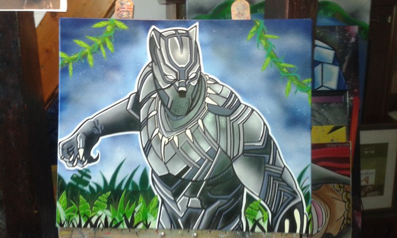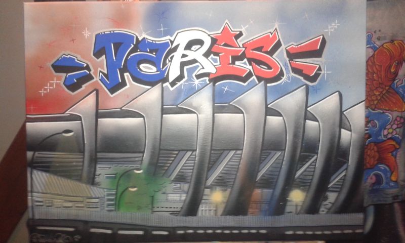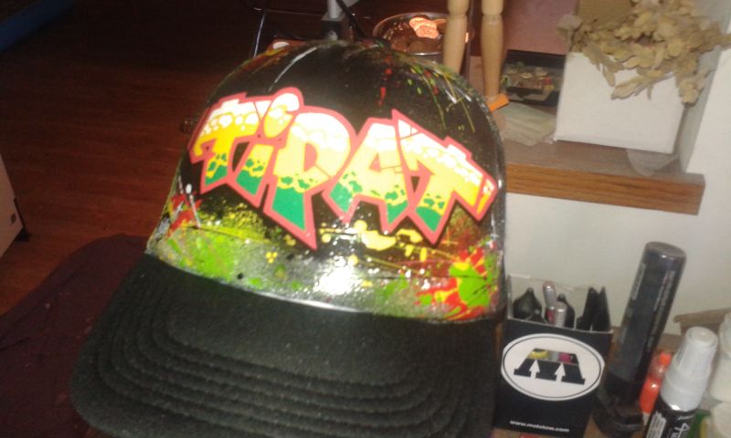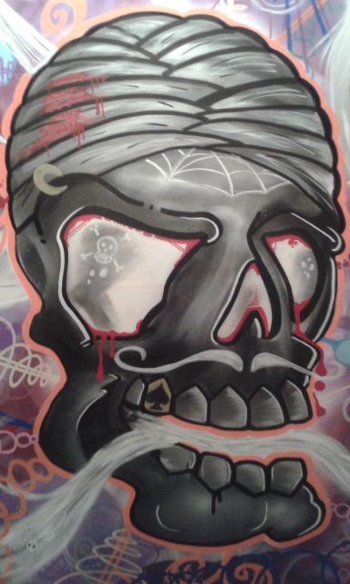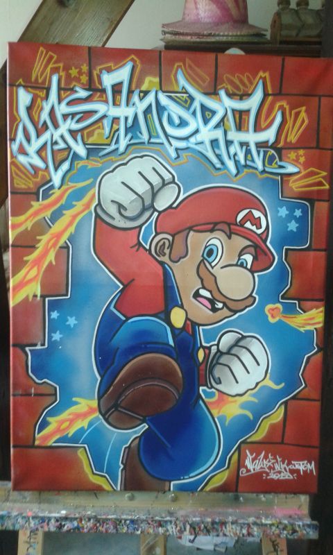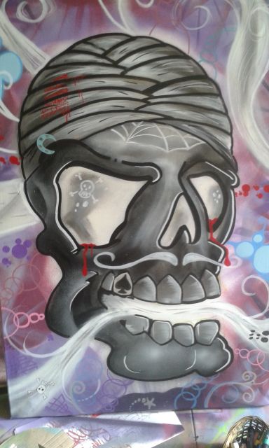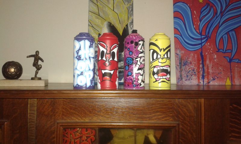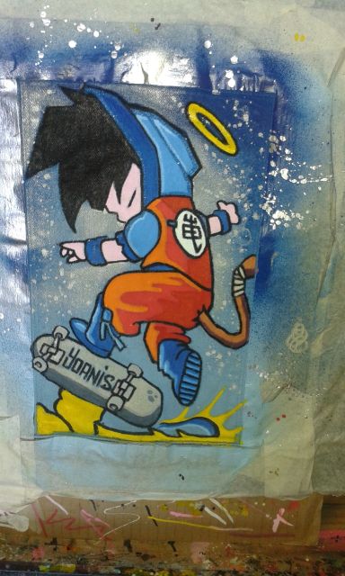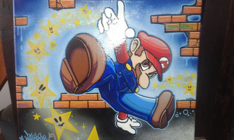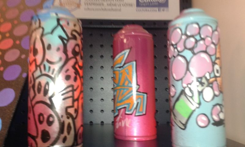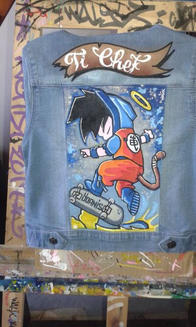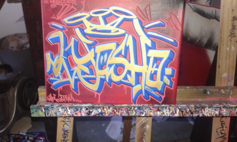 Je réalise pour vos projets, murs, tableaux, vêtements et tous supports où adhère la bombe aérosol, mon principal outil de création.