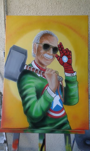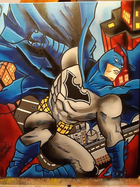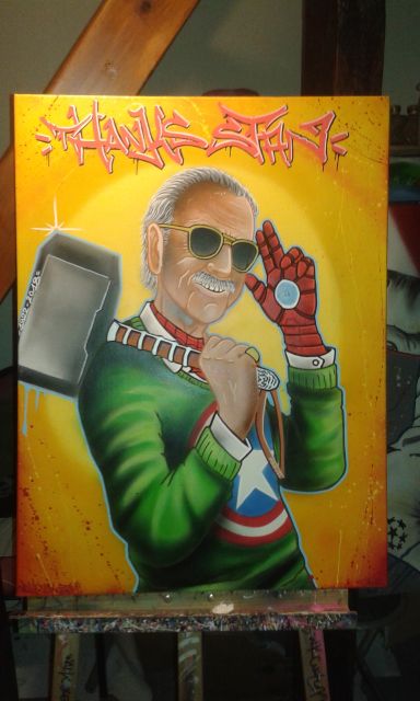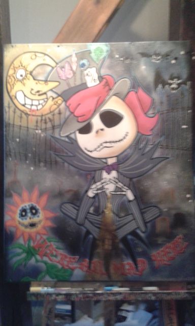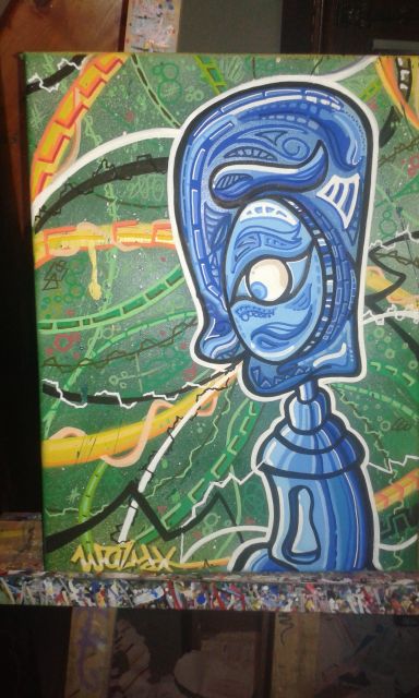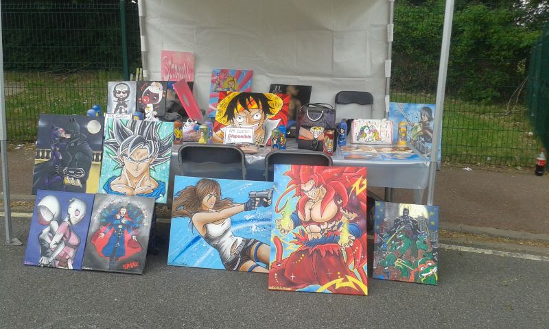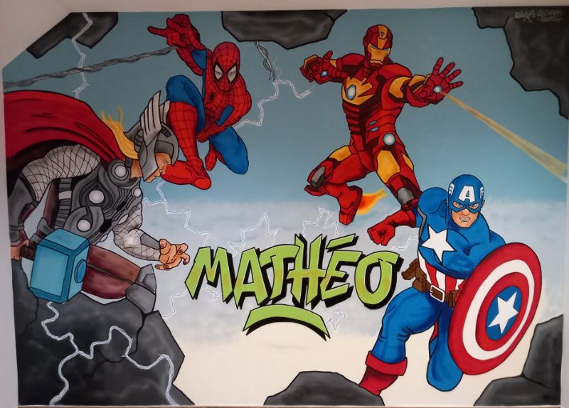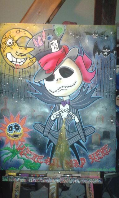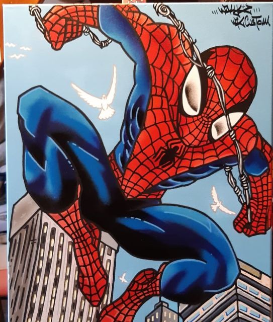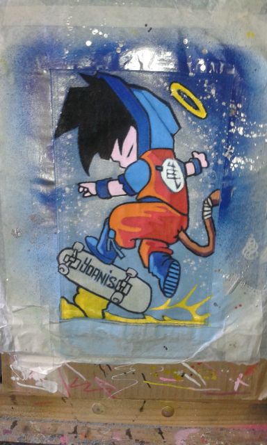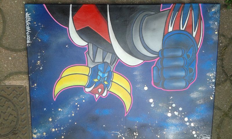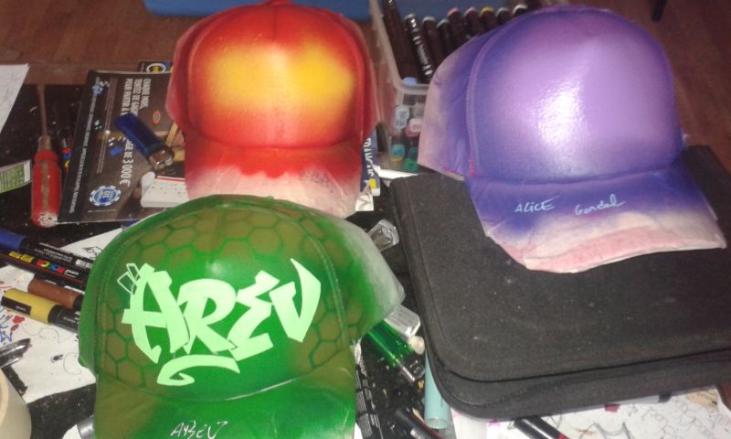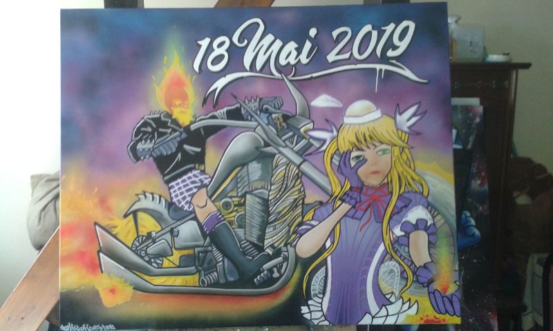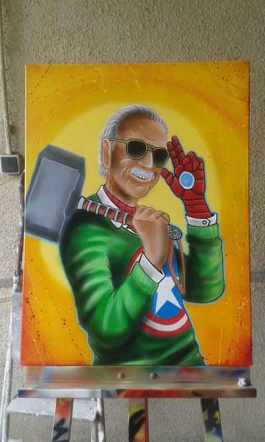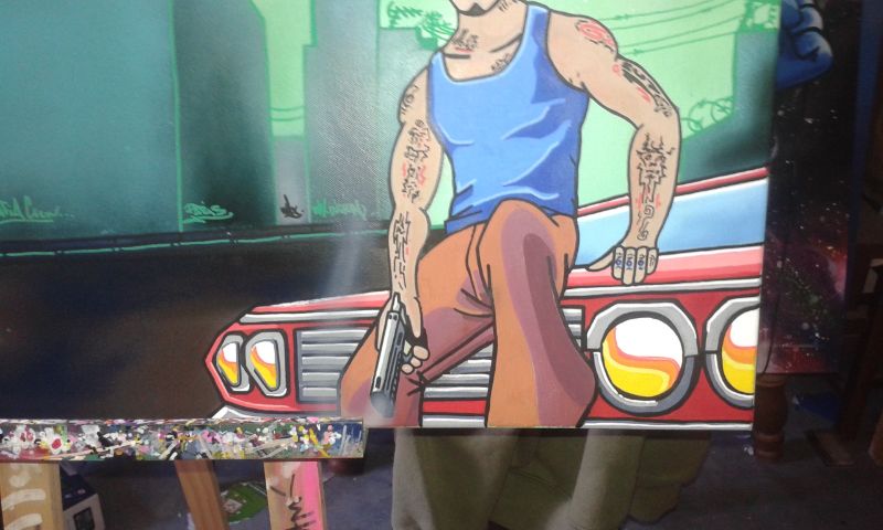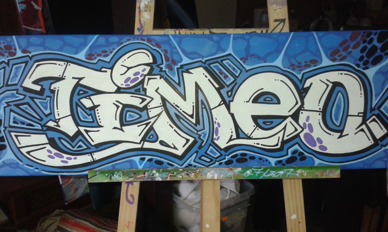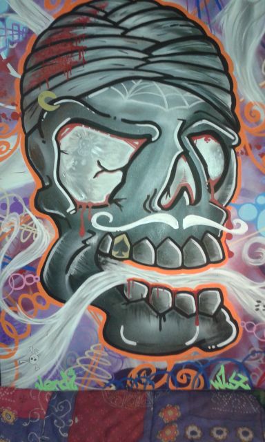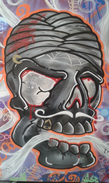 Je réalise pour vos projets, murs, tableaux, vêtements et tous supports où adhère la bombe aérosol, mon principal outil de création.