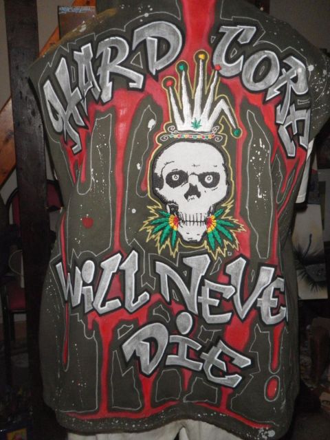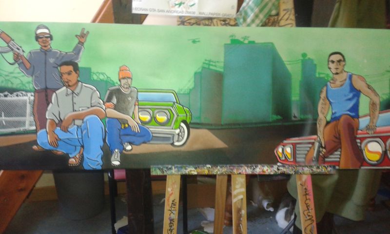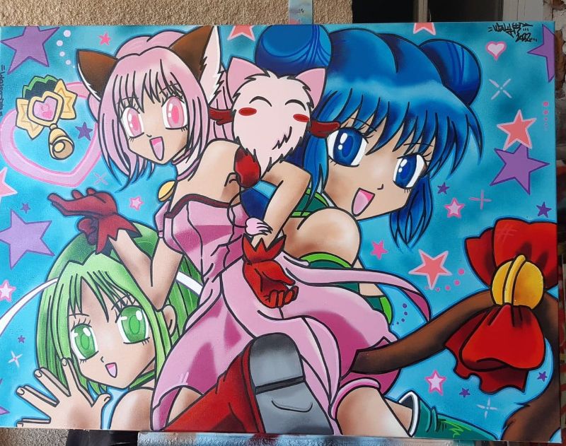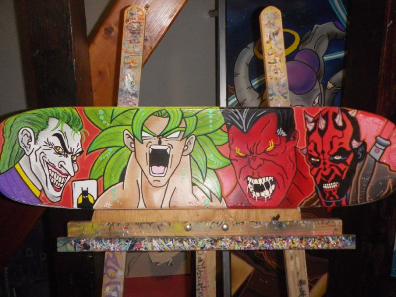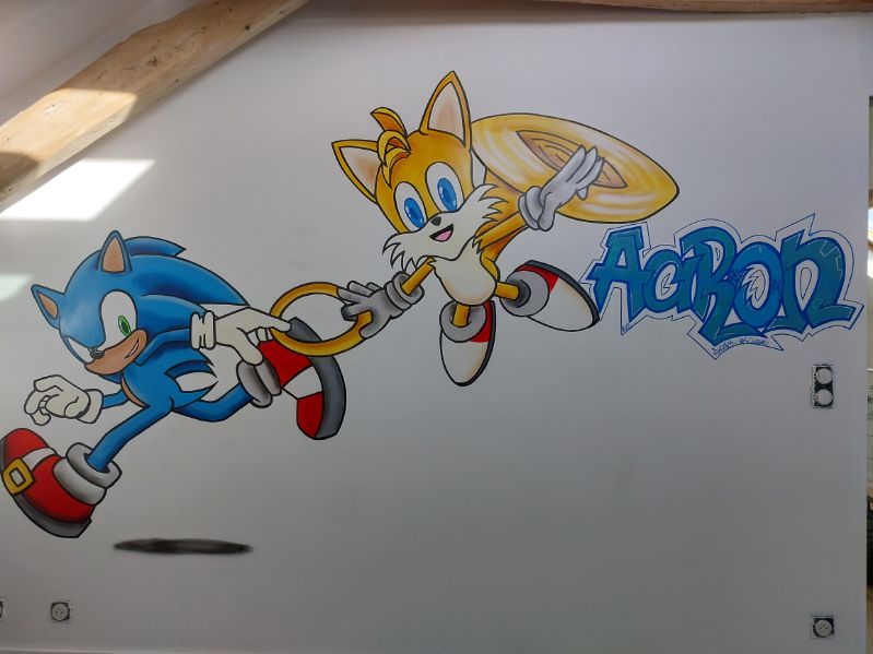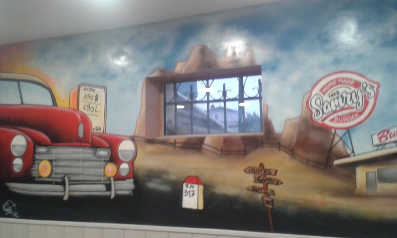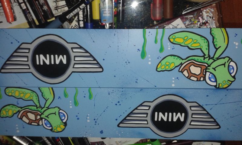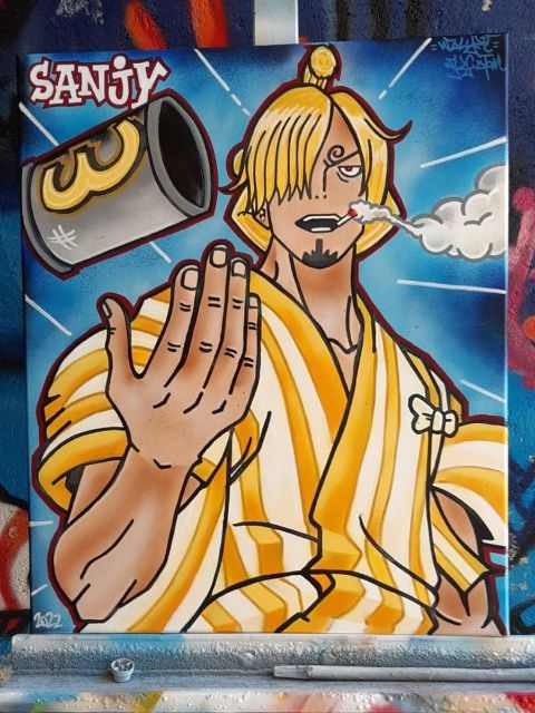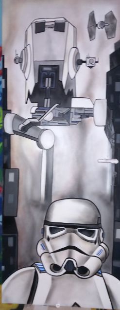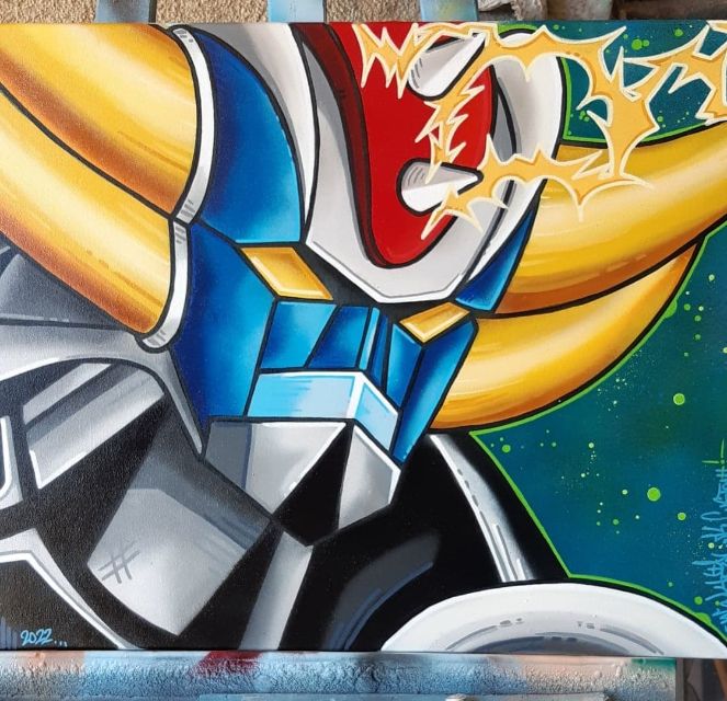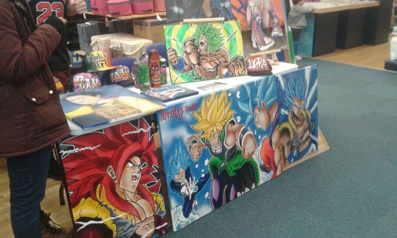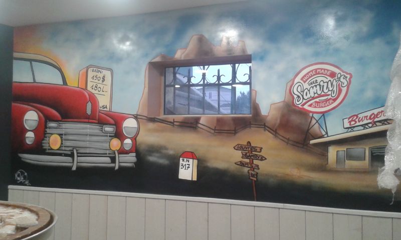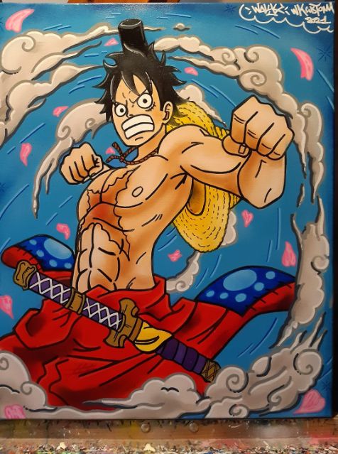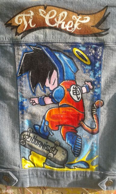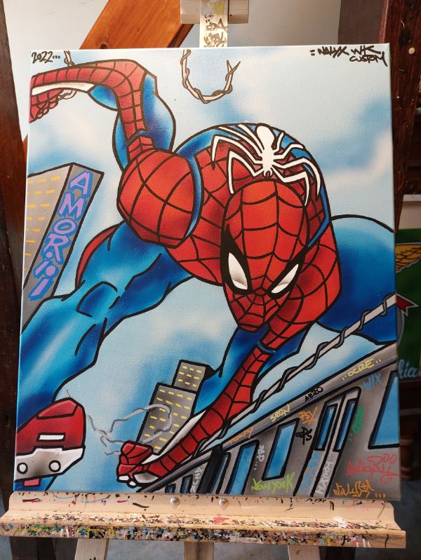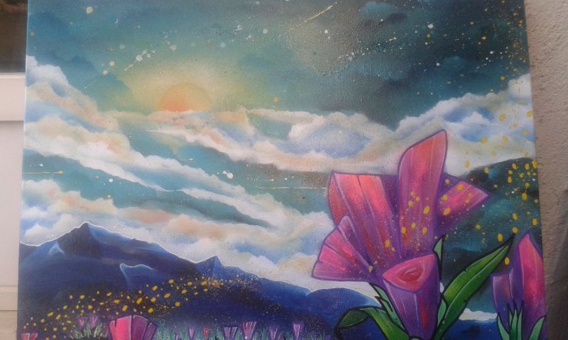 Je réalise pour vos projets, murs, tableaux, vêtements et tous supports où adhère la bombe aérosol, mon principal outil de création.